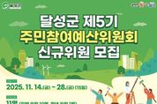 동네방네 김형규 기자 | 달성군은 11월 14일부터 28일까지 제5기 주민참여예산위원회 신규위원 11명을 모집한다. 달성군 주민참여예산위원회는 제안사업의 적정성을 검토하고 심의대상을 결정하며, 사업 담당부서와 논의·조정, 사업 대상지 현장 확인 및 추진결과 평가 등 주민참여예산의 전 과정에 참여한다. 모집인원은 일반위원 10명, 청년위원 1명으로 총 11명이며, 임기는 2년으로 1회 연임이 가능하다. 제출서류 등 자세한 내용은 달성군 누리집을 참고하여 방문, 우편, 이메일로 신청하면 된다. 일반위원은 달성군에 주소를 두거나 직장소재지가 달성군인 사람은 누구나 지원할 수 있다. 청년위원은 공고일 기준 19세 이상 34세 이하로, 달성군에 주소를 두고 있거나 군 소재 대학의 재학생이면 지원 가능하다. 최재훈 달성군수는 “생활 속 불편을 가장 잘 아는 주민이 예산 과정의 주체로 참여할 때 정책의 실효성이 커진다”며 “관심 있는 여러분의 적극적인 지원을 부탁드린다”고 말했다.