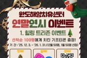 동네방네 김형규 기자 | 완도군은 연말연시를 맞아 군민과 관광객이 완도해양치유센터에서 힐링할 수 있도록 다양한 이벤트를 추진한다. 먼저 방문객들이 사진으로 ‘완도’와 ‘해양치유’를 추억할 수 있도록 센터에 힐링 트리존을 조성했다. 힐링 트리존에서 사진을 찍은 후 개인 SNS에 해시태그(#완도해양치유센터)와 함께 사진을 업로드하면 선착순 100명에게 기프티콘을 증정하는 이벤트를 진행한다. 해양치유센터 1, 2층에 숨겨진 산타 스티커를 찾아 안내 데스크에 제출하면 선물을 주는 ‘산타를 잡아라!’ 이벤트도 준비했다. 두 가지 이벤트는 12월 3일부터 시작된다. 12월 24일부터 27일까지는 해양치유 프로그램과 연계한 감성 있는 연말 분위기를 즐길 수 있도록 ‘크리스마스 원데이 클래스’도 운영한다. 원데이 클래스는 ▲‘완도호랑가시’를 활용한 트리 만들기(24일) ▲다시마 반죽으로 과일 모찌 만들기(25일) ▲비파 비누·캔들 만들기(26일), ▲유자 케이크 만들기(27일) 등 완도 특산물을 활용한 체험과 해양치유(기본2) 프로그램을 연계했다. 참가 방법은 12월 1일부터 22일까지
