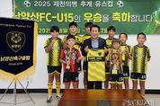 동네방네 김형규 기자 | 양산시는 지난 10일 양산시청 상황실에서 ‘2025 제천의병 추계 U14 유스컵’에서 우승을 차지한 남양산FC 선수단을 초청해 격려하는 자리를 가졌다. 이날 격려 행사에는 남양산FC 백우현 대표, 김윤서 감독을 비롯해 선수들과 학부모 등 20여 명이 참석했다. 나동연 양산시장은 선수들에게 격려와 축하의 말을 전하며 “전국 67개 팀이 참가한 큰 대회에서 전 경기 무실점 우승이라는 놀라운 기록을 세워 양산의 위상을 높여준 선수들이 매우 자랑스럽다”고 말했다. 특히 이번 대회에서 남양산FC는 탄탄한 수비 조직력과 빠른 역습을 앞세워 총 8득점 무실점이라는 압도적인 성적으로 우승을 차지했다. 또 김윤서 감독과 조규찬 코치는 최우수 지도자상을, 이승윤 선수는 최우수 선수상을 수상하며 팀의 우승을 더욱 빛냈다. 남양산FC는 지난 2020년 창단된 스포츠클럽으로, U15팀은 2024년 2월 창단 이후 2년만에 전국 대회 우승이라는 놀라운 성과를 이루었다. 이번 우승은 지난해 초등부의 ‘경주화랑대기 전국유소년 축구대회’ 우승에 이은 쾌거로, 양산 축구의 저력을 전국에 알리는 계기가 됐다.