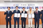 동네방네 김형규 기자 | 충남도가 제110회 전국체육대회 개최지로 최종 선정되면서 도내에서 13년 만에 전국체전을 개최한다. 도는 11일 도청 상황실에서 대한체육회, 도체육회와 함께 ‘2029년 제110회 전국체육대회 개최 업무 협약식’을 열고, 전국체육대회 성공 개최를 위해 손을 맞잡았다. 김태흠 지사와 유승민 대한체육회장, 김영범 도체육회장 등 관계자 10여 명이 참석한 가운데, 이번 행사는 간담회, 협약서 서명 등의 순으로 진행했다. 이번 협약에 따라 세 기관은 △2029년 전국체육대회, 2030년 전국소년체육대회, 2031년 전국생활체육대축전 개최 △경기장 시설 개·보수 등 대회 준비에 협력한다. 제110회 전국체육대회 유치를 위해 도는 지난 2월 도체육회를 통해 대한체육회에 유치 신청서를 제출했으며, 대한체육회는 7월 전국종합체육대회위원회 예비 심사와 8월 이사회 의결을 거쳐 충남을 개최지로 확정했다. 제110회 전국체육대회는 오는 2029년 10월 중 7일간 도내 15개 시군 전역에서 열리며, 전국에서 3만 여명의 선수단이 참가할 것으로 예상된다. 주 개최지는