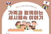 동네방네 김형규 기자 | 대구교육박물관은 오는 12월 20일 오전 10시와 오후 2시, 박물관 행복공감실에서 총 2회에 걸쳐 운영되는 12월 주말가족체험교실 ‘가족과 함께 하는 세시풍속 이야기’에 참여할 초등학생을 포함한 16가족(회차별 8가족)을 모집한다. 이번 체험교실은 세시풍속을 주제로 한 탐구 및 표현 활동을 통해 역사적 지식을 함양하고, 역사를 중심으로 미술·실과 등 다양한 교과와의 융합 활동을 통해 학생들의 창의력을 높이고자 마련됐다. 주요 활동은 ▲세시풍속 개념 탐구하기, ▲2026 세시풍속 달력 만들기, ▲세시풍속 카드 놀이 및 보드게임, ▲전시물 탐방 등으로, 가족 간 소통을 촉진하고, 세시풍속의 의미를 자연스럽게 이해할 수 있는 다양한 체험이 진행된다. 박물관은 12월 5일부터 누리집을 통해 참여 신청을 접수하며, 기타 자세한 사항은 교육학예부로 문의하면 된다. 홍진근 관장은 “이번 프로그램을 통해 가족들이 함께 세시풍속의 의미를 배우고 체험하면서, 일상의 쉼 속에서 역사와 문화의 가치를 느끼시길 바란다”며, “앞으로도 박물관이 지역사회와 소통하며 역사와 문화를 확산하는 공간으로