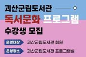 동네방네 김형규 기자 | 충북 괴산군립도서관은 2026년 상반기 독서문화 프로그램을 운영하고 오는 10일까지 누리집을 통해 수강생을 모집한다고 4일 밝혔다. 프로그램은 지역 주민의 독서 생활화를 목표로 독서를 통해 자신을 돌아보고 서로의 생각을 나누는 소통 중심으로 운영된다. 개설 강좌는 △어른을 위한 힐링 그림책 △함께 읽는 윤독 클럽 △나를 스토리텔링하는 여행 등 총 3개다. 어른을 위한 힐링 그림책은 그림책을 통해 세계 역사, 문화 탐색 등 다양한 활동을 할 수 있는 프로그램이다. 함께 읽는 윤독 클럽은 책을 미리 읽어오지 않고 다함께 돌아가면서 책을 읽은 후 생각을 나누는 방식으로 깊이 있는 독서 경험을 제공한다. 나를 스토리텔링하는 여행은 여행의 의미를 다각도로 살펴보고 여행 에세이를 직접 쓰는 강의로 진행될 예정이다. 수강 신청은 군립도서관 홈페이지에서 선착순으로 접수하며 강좌별 운영 일정과 세부 내용은 누리집을 통해 확인할 수 있다. 도서관 관계자는 “이번 프로그램이 책을 통해 자신을 이해하고 서로 공감하는 뜻깊은 시간이 되길 바란다”며 “ 다양한