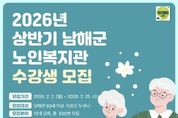 동네방네 김형규 기자 | 남해군 노인복지관은 2026년 상반기 프로그램 수강생을 2월 2일부터 25일까지 모집한다고 밝혔다. 상반기 프로그램은 평생교육 2강좌, 취미여가 11강좌, 건강증진 3강좌 등 총 15강좌로 구성됐으며, 3월 3일부터 6월 26일까지 운영된다. 세부적인 프로그램은 스마트폰교육, 노래교실, 고고장구반, 손발 마사지 등 다양한 교육이 준비되어 있으며 자세한 사항은 남해군 홈페이지에서 확인 가능하다. 수강생은 선착순으로 모집하며, 수강신청 인원 기준 미달시 해당 프로그램은 폐강된다. 수강료는 강좌당 5천원으로 교재비와 재료비는 별도다. 기초생활수급자, 국가유공자, 등록장애인은 무료이며 차상위계층은 수강료의 50%가 감면된다. 수강을 원하는 군내 60세 이상 어르신은 남해군 노인복지관(055-860-3723)으로 방문하시거나 팩스(Fax : 860-3725)로 신청하면 된다. 남해군 관계자는 “어르신들의 건강하고 활기찬 노후생활을 도모할 수 있도록 건강 증진, 평생교육, 취미생활 등의 다양한 분야별 프로그램를 마련했다”며 “준비한 프로그램 수강을 통하여 어르신들이 신체적·정신적으로 더욱