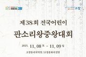동네방네 김형규 기자 | 전북 고창군이 올해의 어린이 판소리 왕중왕을 가리는 ‘제38회 전국 어린이판소리왕중왕대회’ 참가자를 오는 11월7일까지 모집한다. 차세대 어린이 판소리 명창을 발굴 육성하고 판소리 여섯 바탕 사설을 집대성하신 동리 신재효 선생의 문화예술사적 업적을 기념하며 유업을 계승하기 위해 고창군과 KBS전주방송총국이 공동주최하고 (사)동리문화사업회가 주관한다. 대회는 고창 동리국악당에서 11월8일 예선을 거쳐 이튿날(9일) 축하 공연과 병행하여 예선을 통과한 7명의 어린이가 본선 경연을 한다. 왕중왕전은 KBS전주방송총국이 전국에 방영하여 어린 꿈나무들의 판소리 기량을 널리 알리며, 미래의 판소리 인재를 발굴하고, 우리 전통문화의 가치를 확산하는 가치의 의미를 둔다. 대회 참가는 2024~2025년 국악대회에서 입상한 전국의 어린이로 고창군 홈페이지 공고문을 참고하여 신청하고, 관련 및 자세한 사항은 사)동리문화사업회로 문의하면 된다.