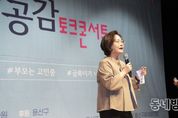 동네방네 김형규 기자 | 박희영 서울 용산구청장은 4일 용산아트홀 소극장 가람에서 열린 ‘성장공감 토크콘서트’에 참석해 어린이집 관계자 및 학부모들과 소통했다. 이번 행사는 용산문화원이 주관하고 용산구가 후원했으며, 유아·어린이 교육과 가족 간 소통에 관심 있는 구민 200여 명이 참여했다. 초청 강사인 개그맨 정성호와 가수 박지헌(V.O.S)은 유쾌한 대화 속에서 가정 내 소통과 이해의 중요성을 전하며 호응을 얻었다. 박희영 용산구청장은 “부모와 자녀 사이에는 무엇보다 ‘공감’이 중요하다. 저 역시 공직자이기 이전에 한 사람의 부모로서 아이와의 관계를 돌아보게 된다”며 “이제는 가정뿐 아니라 정부와 지역사회가 함께 아이를 키워야 하는 시대다. 앞으로도 부모와 어린이집 관계자들이 아이들과 더 깊이 공감하고 소통할 수 있도록 다양한 기회를 꾸준히 마련하겠다”고 말했다.