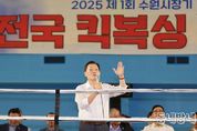 동네방네 김형규 기자 | 이재준 수원시장이 6일 수원시 국민체육센터에서 열린 ‘제1회 수원특례시장배 전국 킥복싱대회’에 참석했다. 이재준 수원시장은 환영사에서 “승패를 떠나 그간 갈고닦은 기량을 맘껏 펼치시길 바란다”며 “대회가 끝난 후 세계문화유산 수원화성과 행궁도 둘러보며 추억을 만드시길 바란다”고 말했다. 수원시킥복싱협회가 주최한 이날 대회에는 전국 킥복싱 동호인 200여 명이 참여했다.