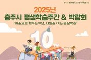 동네방네 김형규 기자 | 충주시는 평생학습도시 지정 10주년을 맞아 오는 18일부터 24일까지 '2025년 충주시 평생학습주간'을 개최한다고 14일 밝혔다. 올해 행사는 ‘배움으로 채우는 10년, 내일을 여는 평생학습’을 주제로, 시민 누구나 배우고 참여하며 함께 성장하는 시민 참여형 축제로 마련됐다. 행사는 충주시평생학습관과 탄금공원 메인무대를 중심으로 펼쳐지며, ‘배움·성장·미래’ 세 가지 키워드로 한 다채로운 프로그램을 진행한다. 먼저, ‘배움’을 주제로 한 '제8회 충주시평생학습박람회'에서는 10주년 특별공연과 개막식, 유공자 시상식을 비롯해 동아리 발표회, 작품 전시, 체험 부스, 프리마켓, 푸드존 등 시민이 즐길 수 있는 다채로운 현장 행사가 열린다. 다음으로, ‘성장’을 주제로 한 '제9회 충주시 문해 한마당'에서는 몸풀기 웃음체조, 삼행시 한마당, 문해 골든벨(OX퀴즈), 성인문해교육 시화전 등 문해학습자들의 성과를 공유하며 성인문해교육의 가치를 되새긴다. 마지막으로, ‘미래’를 주제로 한 평생학습도시 지정 10주년 기념행사에서는 평생학습 정책포럼, 인문학·미래과학·명사