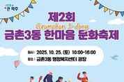 동네방네 김형규 기자 | 파주시 금촌3동 ‘제2회 한마음 문화축제’가 오는 25일 10시, 금촌3동 행정복지센터 광장에서 개최된다. 금촌3동 주민자치회가 주최하는 이번 축제는 주민들이 바쁜 일상에서 벗어나 지친 마음을 달래고 서로 소통하는 화합의 장을 만들기 위해 마련됐으며, 발표회를 통해 금촌3동 주민자치센터 수강생들이 그동안 연습해 온 성과도 아낌없이 선보일 예정이다. 행사는 ▲주민자치센터 수강생들의 성과 발표회 ▲주민이 직접 꾸미는 한마음 예술제 ▲벼룩시장(플리마켓) ▲공예, 원예, 친환경 전기자전거 등의 다양한 체험활동 ▲먹거리 나눔 등 가을날의 다채로운 즐길 거리를 제공할 계획이다. 남인우 금촌3동 주민자치회장은 “금촌3동 한마음 문화축제가 제2회를 맞이해, 올해도 축제를 통해 주민들을 만날 수 있어 기쁘다”라며 “축적된 경험을 통해 더 풍성하고 주민들이 즐길 수 있는 문화축제로 자리매김할 수 있기를 기대한다”라고 전했다.