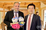 동네방네 김형규 기자 | 진주시는 지난 3일부터 6일까지(3박 4일) 지난해 진주시와 우호도시 교류의향서를 체결한 프랑스 ‘투레트(Tourrettes)시’의 ‘세바스티앙 모로(Sébastien Moreau)’ 부시장과 관계자들이 진주시를 방문했다고 밝혔다. 이번 방문은 진주시의 대표축제인 남강유등축제의 개최를 축하하고, 주요 문화예술 인프라와 두 도시 간 미술교류 확대 방향을 모색하기 위한 문화관람 및 교류 목적으로 이뤄졌다. 특히 지난 4일에는 조규일 진주시장과 ‘세바스티앙 모로’ 투레트 부시장이 진주성 중영에서 간담회를 가져 관심을 모았다. 이 자리에서 조 시장은 올해 3월 ‘투레트시 바이올렛축제(Fête des Violettes)’에서 4000개의 바이올렛 꽃으로 장식한 진주시의 관광캐릭터 ‘하모’와 진주를 대표하는 ‘유등’을 소개한 것을 비롯해 7월 이성자 화백의 ‘이젤’이 프랑스에서 진주로 안전하게 운송될 수 있도록 노력해준데 대한 감사를 전하고, 지속적인 협력을 약속했다. 이에 세바스티앙 부시장은 이성자 화백 아틀리에의 프랑스 정부 지정 ‘주목할 만한 현대 건축물’ 선정에 따른 현판식에