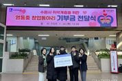 동네방네 김형규 기자 | 수원 영통중학교 창업동아리 학생들이 창업 활동 수익금을 모아 수원시 취약계층 시민을 위해 기부했다. 1월 29일 수원시청 본관 1층 로비에서 열린 기부금 전달식에는 윤영숙 시민복지국장, 영통중학교 창업동아리 학생 등이 참석했다. 학생들은 직접 디자인·제작한 탁상용 달력 100개를 판매해 마련한 수익금 45만 원을 수원시에 전달했다. 수원시는 기부금을 취약계층 시민 지원을 위해 사용할 예정이다. 영통중학교 창업동아리 학생들은 “작은 나눔이지만 어려운 이웃들에게 도움이 되기를 바라는 마음으로 기부에 참여했다”며 “직접 만든 작품으로 나눔을 실천할 수 있어 기쁘다”고 소감을 밝혔다. 윤영숙 시민복지국장은 “학생들이 활동 수익금으로 이웃사랑을 실천한 모습이 대견하다”며 “따뜻한 나눔이 지역사회 전반으로 확산되기를 바란다”고 말했다.
