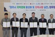 동네방네 김형규 기자 | 청주시는 13일 임시청사 직지실에서 청주상공회의소 및 지역 내 주요 기업과 청주사랑상품권(청주페이) 활성화를 위한 업무협약을 체결했다. 이날 협약식에는 이범석 청주시장과 차태환 청주상공회의소 회장, 박호현 SK하이닉스㈜ 부사장, 김영대 ㈜LG화학 청주공장 대외협력팀장, 최상운 에코프로 부사장, 김용술 ㈜LG에너지솔루션 오창주재임원, 이규득 ㈜심텍 상무가 참여했다. 협약은 지역경제 활성화와 민생경제 회복을 위해 소상공인과의 상생 협력을 강화하고, 지역 내 소비를 촉진하기 위해 마련됐다. 협약의 주요 내용은 △직원들에게 지급하는 선택적 복지제도(복지포인트, 포상금 등) 중 일부를 청주페이로 지급하는 방안 마련 △설·추석 등 명절 기간 전통시장 장보기 행사 추진 △청주페이 사용 적극 홍보 등이다. 특히, 지난 9일 복대가경시장에서 열린 설맞이 전통시장 장보기 행사에는 이번 협약에 참여한 기업 중 에코프로와 ㈜심텍 임원들이 이범석 청주시장과 함께 참여해 지역 상생의 의미를 더했다. 이 시장은 “지역경제 활성화를 위한 이번 협약에 적극 동참해준 기업들의 지역사랑 실천 의