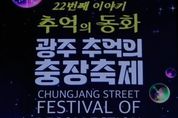 동네방네 김형규 기자 | 가을밤, 광주 동구 도심이 한 편의 동화로 물들었다. 광주 동구는 ‘추억의 동화’를 주제로 열린 제22회 광주 추억의 충장축제가 금남로와 충장로 일대를 동심으로 물들이며, 시민과 관광객들이 함께 웃고 추억을 나눈 광주의 대표 명품축제로 거듭났다고 밝혔다. 올해 충장축제는 지난 15일부터 19일까지 닷새간 ‘추억의 동화’를 주제로 충장로, 금남로, 5·18민주광장, 국립아시아문화전당 등 동구 전역에서 펼쳐졌다. 축제는 ‘우리의 기억 속에서 잠들어 있던 동화 속 이야기들이 이 가을, 충장로를 따라 은은한 빛을 머금고 깨어난다’는 메시지 아래, 각 공간은 어린 시절의 동화를 떠올리게 하는 조명과 오브제로 채워졌다. 거리 곳곳에는 ‘이상한 나라의 앨리스’, ‘백설공주’, ‘선녀와 나무꾼’ 등 우리에게 친숙한 이야기들이 예술적 조형물로 시민들과 만났으며, 광주은행과 함께 신서석로에 마련한 ‘추억의 테마거리’도 7080 추억을 선사하며 시민들의 발길과 눈길을 동시에 사로잡았다. ●참여로 완성된 축제… 시민 체험 프로그램 ‘후끈’ 올해 충장축제의 진정한 주인공은 바로 시민이었다. 시민들은 주먹밥 콘