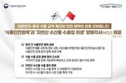동네방네 김형규 기자 | 대한민국-중국 식품 교역 확대와 안전 협력이 한층 강화됩니다. - '식품안전협력'과 '자연산 수산물 수출입 위생' 양해각서(MOU) 체결('26.1.5.) 양국 간 식품안전 협력 강화 식품안전 법률·규정 등 정보 교환, 수입식품 부적합 정보 제공 및 현지실사 협조 등 식품안전 규제 분야 협력 체계 구축 식품 수출 공장 등록 절차 간소화 식약처가 일괄 등록 가능해져 복잡하고 오래 걸리던 절차 부담 완화 자연산 수산물 수출 절차 완화 자연산 수산물 신규 수출 등록 시 위생평가가 제외되어 우수한 K-수산물의 중국 시장 진출 확대 기대 "식약처는 국제 협력을 통해 K-푸드의 글로벌 경쟁력 강화와 수출을 적극 지원하겠습니다."