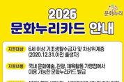 동네방네 김형규 기자 | 김포시는 오는 1월 16일부터 21일까지 4영업일 간 2026년 문화누리카드 자동재충전을 실시한다고 밝혔다. 문화누리카드란 경제적으로 소외된 6세 이상 기초생활수급자 및 차상위계층에게 다양한 문화 혜택을 제공하고자 추진 중인 사업으로, 연간 15만 원 상당의 바우처 카드가 발급된다. 아울러 13~18세의 청소년기, 60~64세의 준고령기에 해당하면 1만 원이 추가 지원된다. 자동재충전 대상은 2025년 문화누리카드를 발급받은 자 중 3만 원 이상의 사용 이력이 있으며, 2026년에도 수급 자격을 유지하는 자로 한정된다. 해당 조건을 충족하면 별도 신청 절차 없이 자동으로 충전되고 1월 중 완료 문자가 발송될 예정이다. 이용 기간은 2월 2일부터 12월 31일까지며, 자동재충전 여부는 관할 행정복지센터와 온라인 누리집, 고객센터 및 모바일앱에서 확인할 수 있다. 다만, 자격검증기간인 2026년 1월 6일부터 8일까지 수급 자격이 없는 자와 카드 유효기간이 2026년 1월까지인 카드 소지자, 2025년 복지시설 발급자 등은 자동재충전 대상에서 제외된다. 자동재충전 대상이 아니더