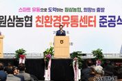 동네방네 김형규 기자 | 용인특례시는 8일 처인구 원삼면에 ‘원삼농협 친환경유통센터’ 준공식이 열렸다고 밝혔다. 이상일 시장은 8일 오전 준공식에 참석해 원삼농협 관계자들과 ‘원삼농협 친환경유통센터’ 시설을 둘러보고, 안전한 학교급식을 위한 친환경 농산물을 공급하는 핵심 거점으로 발전하기를 응원했다. 이상일 시장은 “원삼농협 친환경유통센터가 지역의 농업인들에게 더 큰 희망을 선물하고, 원삼면 지역이 새롭게 도약할 수 있는 거점이 되기를 기대한다”며 “지역 농업인의 소득과 편의를 증진하고, 학생들에게는 친환경 먹거리를 제공하는 훌륭한 시설로서 많은 역할을 할 것”이라고 말했다. 이 시장은 “원삼면은 SK하이닉스가 600조원을 투자하는 ‘용인반도체클러스터 일반산업단지’에 입주하는 기업과 지역의 인구 증가가 예상되는만큼 친환경 농산물을 생산하는 농업의 중요성도 높아질 것으로 예상한다”며 “대한민국 최고 수준의 시설을 갖춘 원삼농협의 친환경유통센터가 지역 농업인들에게 사랑받는 훌륭한 공간이 되기를 바란다”고 했다. 원삼면 두창리34-3번지에 준공한 ‘원삼농협 친환경유통센터’는 지역내 학교급식에 공급하는 친