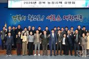 동네방네 김형규 기자 | 경상북도는 2월 11일 도청 화백당에서 시‧군 농정 부서장과 유관 기관 관계자 등 150여 명이 참석한 가운데 2026년 농정시책 설명회를 개최했다. 이번 회의에서는 2026년 경북 농정방향과 5대 중점 추진전략을 공유하고, 경북형 공동영농의 시군 연계 강화 방안과 국비 공모사업 대응 전략 등 주요 현안을 심도 있게 논의했으며, 시‧군의 다양한 의견을 청취하는 시간도 가졌다. 2026년 경북농정은‘농업소득 두 배로! 경북 농업대전환 확산 가속’을 목표로 ▲든든한 농업, 새로운 기회가 되는 농촌으로 대전환 ▲K-푸드 선도, 글로벌 농식품산업 구현 ▲농업생산시스템 혁신, 미래 신성장 동력 창출 ▲가축개량 및 스마트 기술로 미래 선진 축산 구현 ▲차단방역으로 건강한 가축, 안전한 축산물 공급 등 5대 중점 전략을 중심으로 추진해 나갈 계획이다. 특히, 도는 농식품부 국정과제로 채택된 경북형 공동영농의 도약을 위해 올해부터는‘선 교육 후 지원’체계를 본격 도입하고, 단계별 지원체계를 정립해 나가기로 했다. 마을 및 들녘 단위의 공동체 중심으로 역량 강화 교육을 추진할 방침이다. &